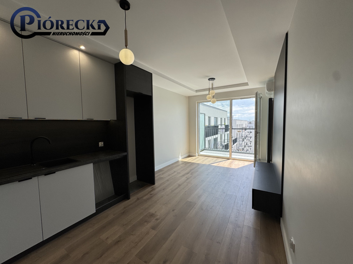Salon z półotwartą kuchnią i wyjściem na balkon