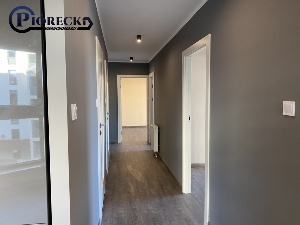 - Układ: 4 pokoje - przestronny salon z szafą, wyjściem na balkon z tarasem i półotwartą kuchnią wyposażoną we wszystkie sprzęty AGD, 3 osobne pokoje/sypialnie w tym dwie z wyjściem na balkon (pokoje ok. 18m2, 10m2, 10m2)