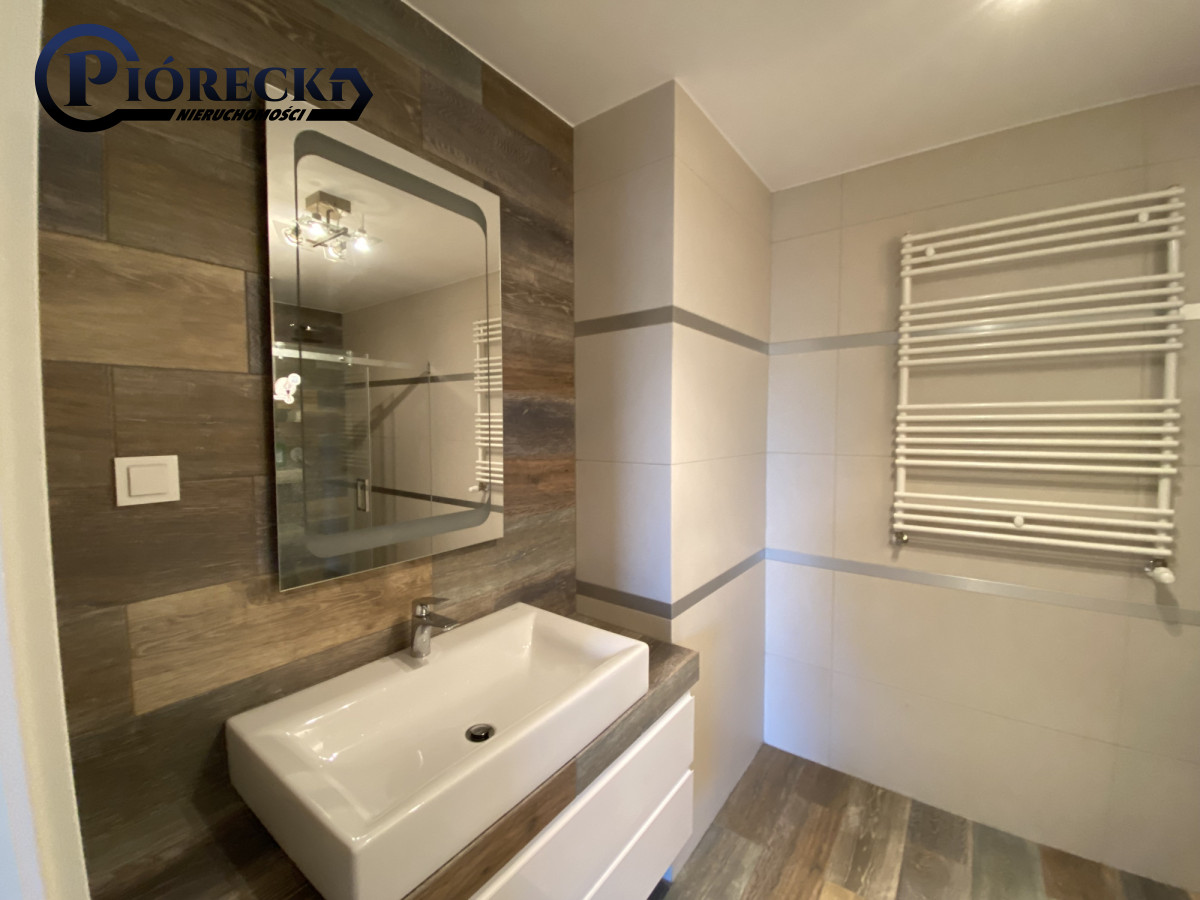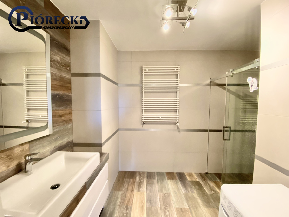 - Łazienka: z dużym prysznicem typu walk-in, pralka